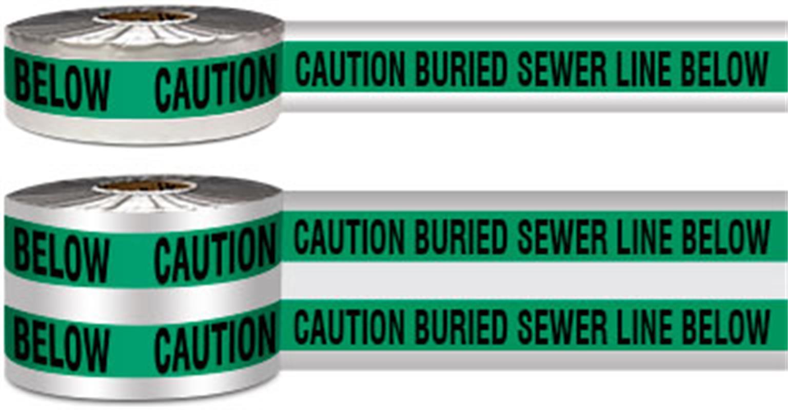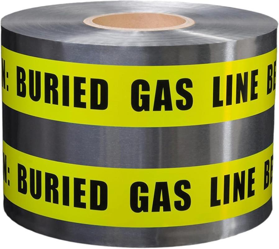 検出可能な地下警告テープは特別にラミネートされたペット/フォイル/ポリ混合物ですこの驚くべき混合物 (ポリエステルと) は,他のすべてのポリエチレンタイプ検出可能な警告テープと比較して例外的な強度特性を提供しますAPWAの色でコードされた背景の黒色のメッセージは,アルカリ,酸,または地下にある他の破壊的な要素にさらされたときに,劣化したり消去したりしないように処理されています.